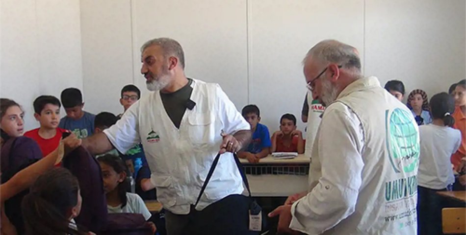 Deprem bölgesindeki öğrencilere kırtasiye ve okul çantası yardımında bulunan Hami-Der ve Umut Kervanı depremzede öğrencilerin yüzünü güldürdü.