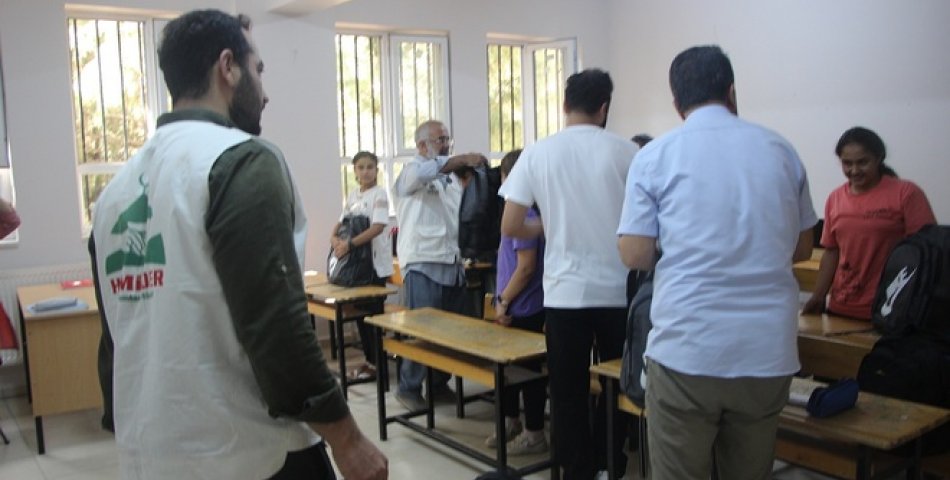Merkezi İstanbul'da bulunan HAMİ-DER, deprem bölgesi Adıyaman'daki öğrencilere okul çantası ve kırtasiye yardımında bulundu.